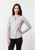 The Bell Top from Annette Gortz is a natural fit piece that emphasizes all the right curves. Exposed seaming, contrast ribbed side panels. Statement zip at center front neck. Color Smoke. 92% Cotton, 8% Spandex, Trim 100% Cotton. Made in Germany. Ashley is wearing a Small.